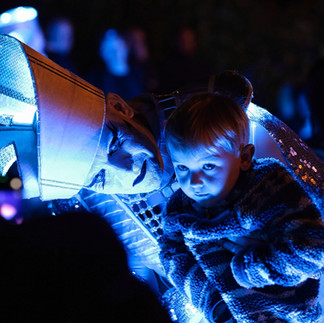 The theme of this year’s festival was Light & Dark. Most fittingly, the festival culminated on the evening of the 26th October with the Cheadle Lantern Parade. Lanterns were made by members of the public, community workshops and schools. And joining the Lantern Parde through the town centre were North East based Worldbeaters Music street-theatre group Spark! – a street troupe wonderfully combining drumming, choreography and fantastic lighting display